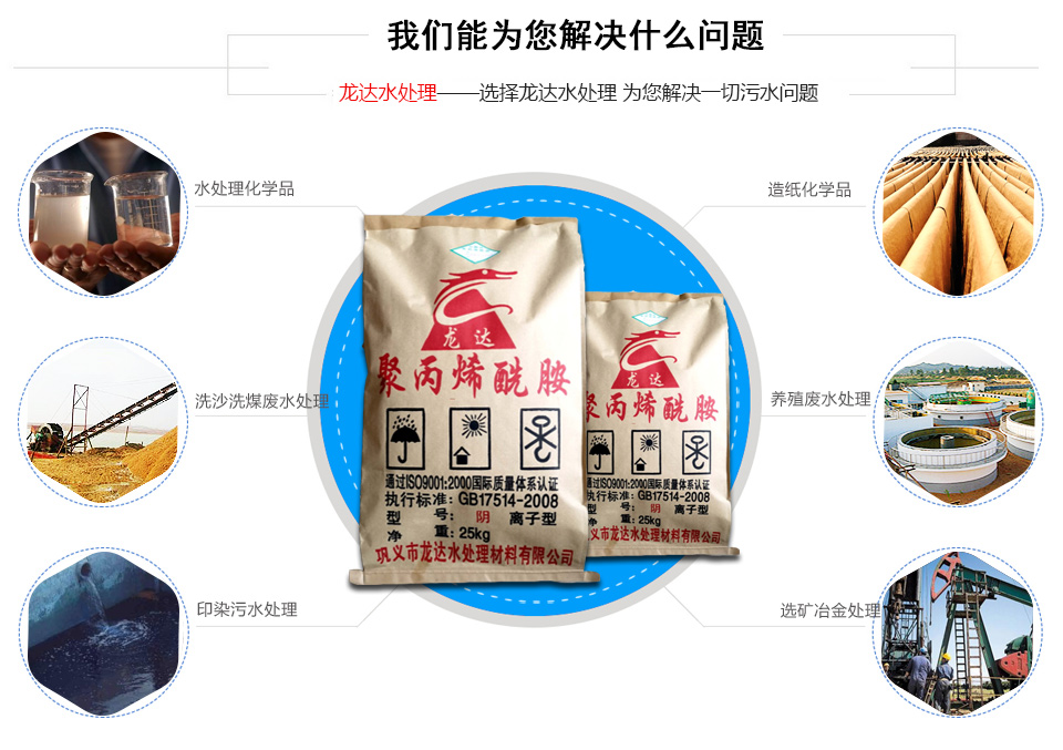 鞏義市龍達水處理材料有限公司是一家專業生產環保凈水原料的企業,其中聚丙烯酰胺是本公司主要生產的產品之一,它是一種水溶性高分子中應用廣泛的品種之一,具有“百業助劑”、“產品”之稱,目前在環保領域應用相對比較廣泛。